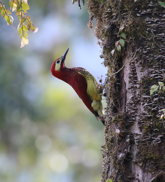 Glenn went off and lured out an Andean Pygmy Owl with a tape while we continued birding the trail along the ridge finding amongst others a quite superb Crimson mantled Woodpecker and a Masked Trogon.