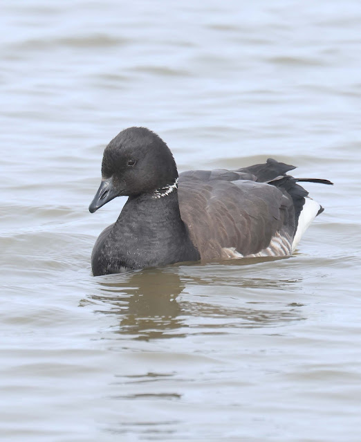 Up to a hundred and fifty Dark bellied Brent Geese were feeding on the saltmarsh behind the hide and periodically would fly back onto the lagoon in front of the hide to rest and swim about before returning to the land. I feel a great affinity with these small dark geese, hardly larger than a mallard, as for twenty five years I counted them during the winter at West Wittering in Sussex as part of The Wetland Bird Survey (WeBS) and watched their fortunes wax and wane year on year. Always, on seeing them I feel a melancholy come over me remembering happy times in Sussex and wondering where did all the time go and how fast the years seem to have passed