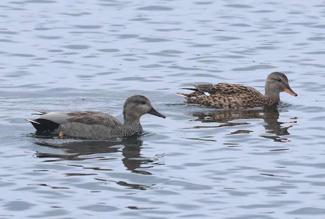 Gadwall have returned to the reservoir in the last week or so, a sure sign of Spring's imminent return to Farmoor and today a few pairs were scattered across the water. The males superficially grey, dull and uninteresting when seen from afar reveal a subtle beauty of blended muted colours, overidden with streaks, spots and vermiculations when seen closely. Their aesthetically pleasing appearance is somewhat devalued by the fact they can only muster a rather comical call, ironically mimicking those duck decoys blown by wildfowlers, an abrupt noise rather like someone blowing a raspberry.