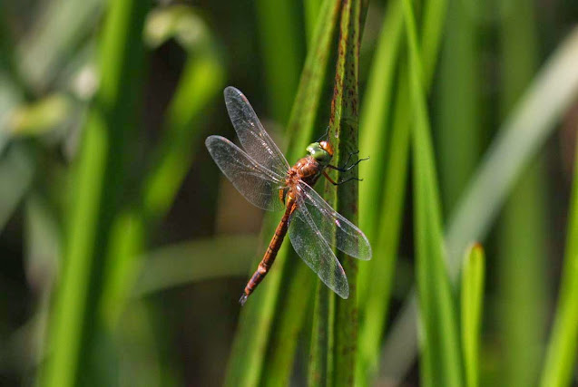 A few yards further and another Norfolk Hawker unseen at first, rose from some brambles and then settled, hidden from my sight in the whispering reeds. I went after it but it was away before I could get close but I clearly saw the distinctive green eyes as it glided off. It was getting better but the ultimate would be to see one settled where I could look and admire at my leisure.